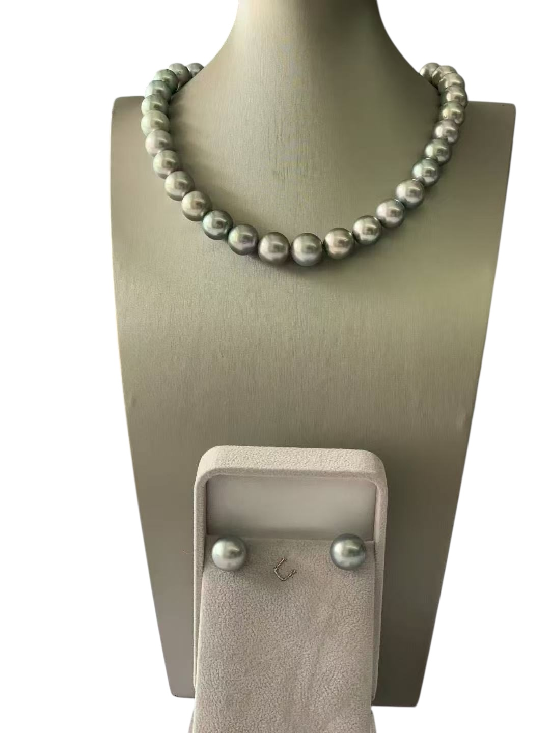 PER118 (鉑金灰珠鏈)大溪地 PER114 (鉑金灰珠耳環)大溪地
