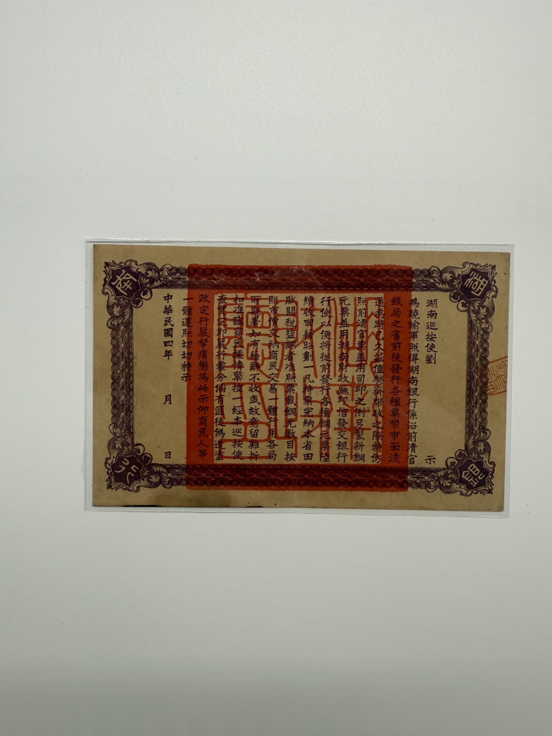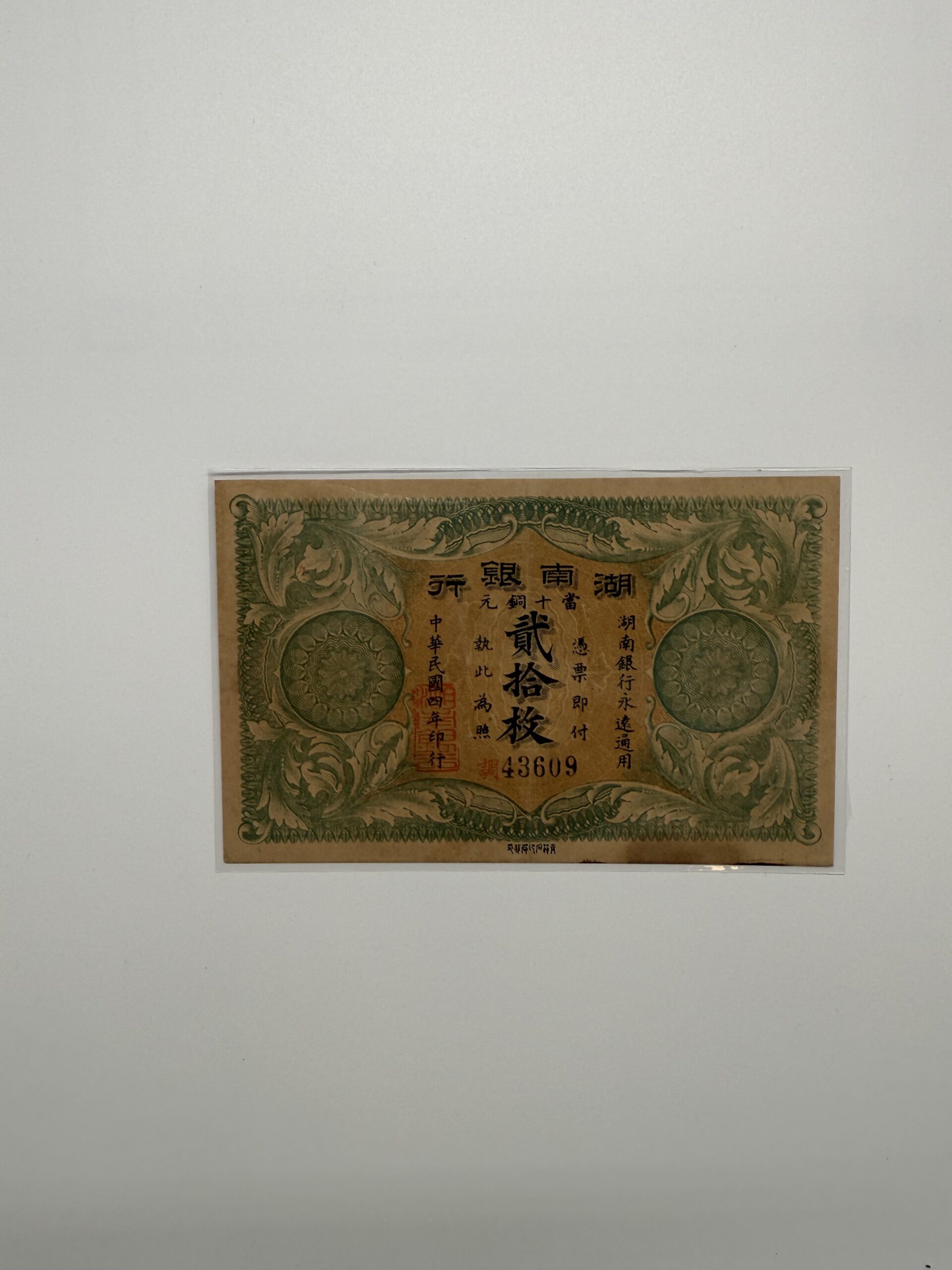 湖南銀行貳拾枚 1915年 43609 九成半新