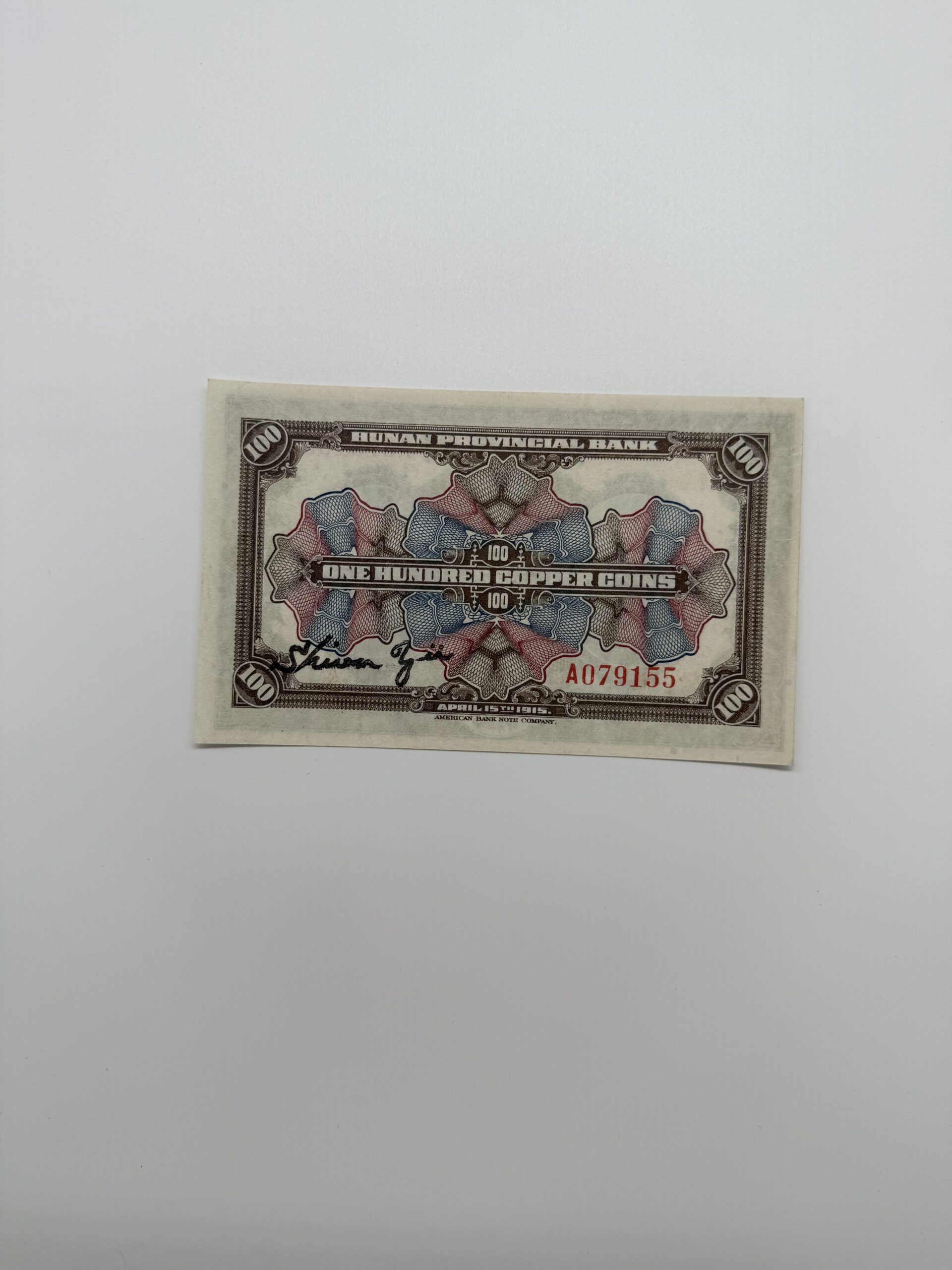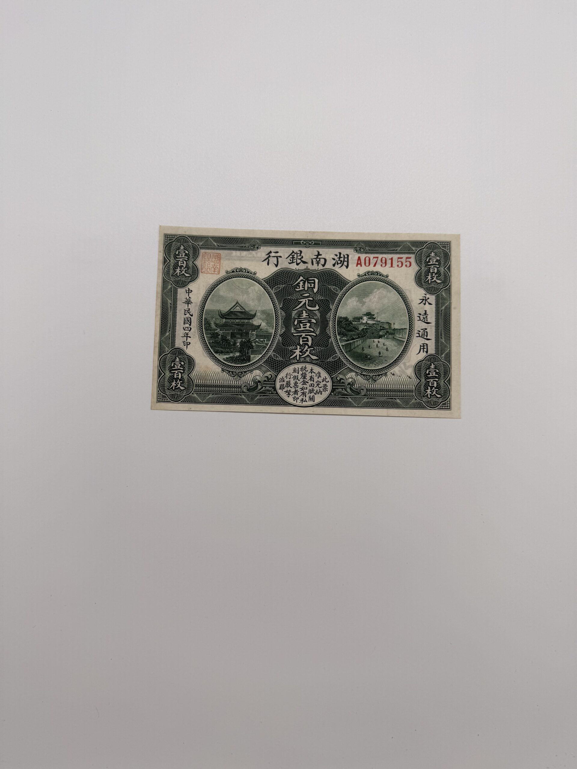 湖南銀行100枚 1915年 九成新 A079155